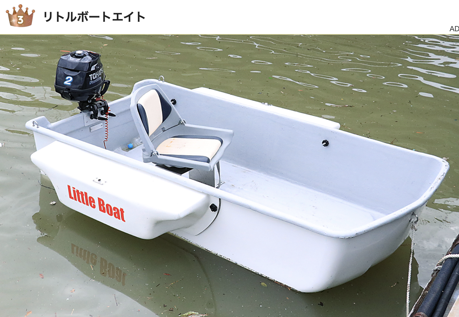 リトルボートエイトは、全長約2.2 m・定員2名の軽量ミニボート。FRP製で取り回しが容易なため、湖や湾内などの近場釣り、あるいは初めてのボートとして適している。船外機2馬力対応で、手軽に水上フィッシングを楽しめる入門艇だ。